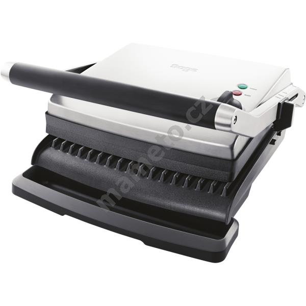 - Světelná indikace připojení k síťové zásuvce a nahřátí grilovacích desek