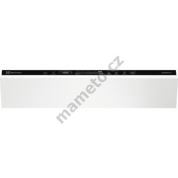 Horní košík má 2 skládací držáky, 2 skládací drátěné držáky pro skleničky, 2 měkké špičky, 6 měkkých špiček pro vinné sklenky, skládací poličky na šálky, nerezové držadlo Electrolux, Postranní držáky košíku