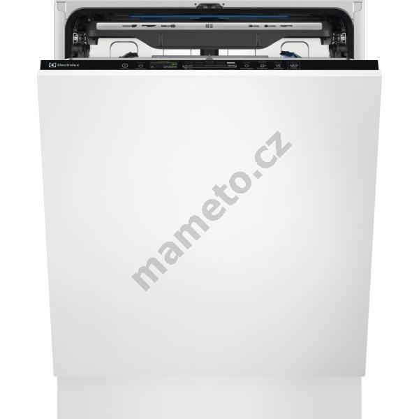 Horní košík má 2 skládací držáky, 2 skládací drátěné držáky pro skleničky, 2 měkké špičky, 6 měkkých špiček pro vinné sklenky, skládací poličky na šálky, nerezové držadlo Electrolux, Postranní držáky košíku