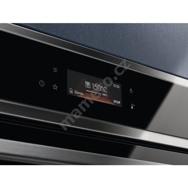 Elektronické funkce: 225 různých přednastavených programů vaření Assist (váha/senzor jídla/pára), 3 oblíbené programy, 31 jazyků, akustický signál, automatické vypnutí, nastavení hlasitosti minutky, Check Result (Finish Assist by remaining 10% duration), Child lock (in off mode), minutka pro čištění, Clock style in standby (2 versions), čas vaření, čas vaření s odhadem konce, odpaření, demo program s kódem, odvápnění, nastavení jasu disp., Display Full colour TFT touch 95x35mm, Drying function after cavity steaming, elektronická regulace teploty, výběr rychlého předehřátí, jídelní sonda, automatické vypnutí jídelní sondy, jídelní sonda - indikace teploty jádra, jídelní sonda s odhadem času, udržení teploty 65°C, tóny kláves, alarmů a chyb, aktivace/deaktivace (kromě hlavního vypínače), jazyky / textový displej, hlavní vypínač, denní paměť 3 dny zpětně, minutka, osvětlení trouby zapnout / vypnout (menu + samostatné tlačitko), ukazatel teploty (°C), ukazatel zbytkového tepla, použití zbytkového tepla, proplachování, info k servisu, číštění párou (2 cykly: Steam Cleaning, Steam Cleaning Plus), vypnutí denního času při vypnuté troubě, doporučená teplota, denní čas, nastavení tvrdosti vody