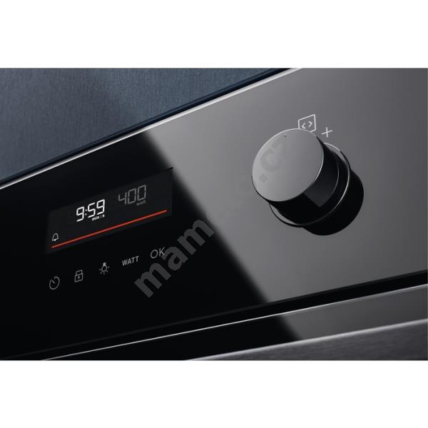 Možnost elektronického nastavení trouby: nastavení hlasitosti minutky, automatické vypnutí (jen trouby), alarm/hlášení chyb, akustický signál, 12 variety of pre-set cooking programmes "Assist", Child lock (in off mode), čas vaření, čas vaření s odhadem konce, přičítání času, Delayed start (Time delay), demo program s kódem, nastavení jasu disp., dveřní spínač pro světlo, Function lock (in running mode), Key tones menu with deactivation, Menu non-connected, Microwave Power level proposal, minutka, osvětlení trouby zapnout / vypnout (menu + samostatné tlačitko), info k servisu, denní čas