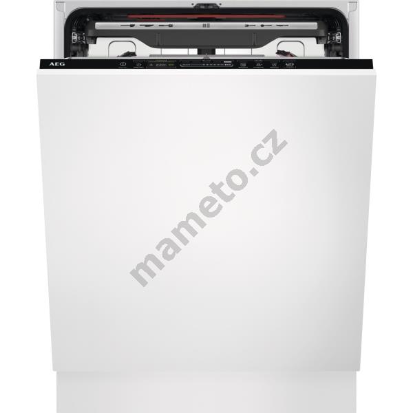 Horní košík má 2 skládací držáky, 2 skládací drátěné držáky pro skleničky, 2 měkké špičky, 6 měkkých špiček pro vinné sklenky, skládací poličky na šálky, Premium Rails, nerezové držadlo AEG, boční úchyty koše
