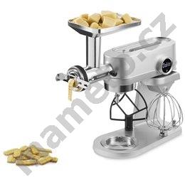 S lehkostí umele kilogramy masa, a jestli to sami ustojíte, naložte mu ještě pesta nebo ho nechejte uhníst těžká těsta. Umí však pracovat i velmi jemně, promíchá a vyšlehá nadýchané krémy či tekutá těsta, přičemž na míse neulpí ani kousek zapomenutého zbytku. Zaujmou také nástavce na tvorbu těstovin, díky kterým můžete zažít Itálii každý den. Pochopitelně zeleninu nakrouhá či nastrouhá dle přání.