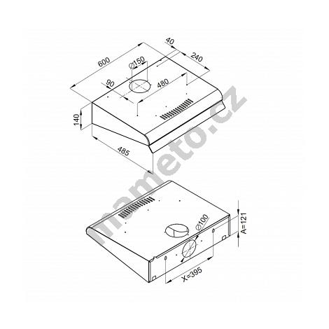 • horní odtah o 150 mm