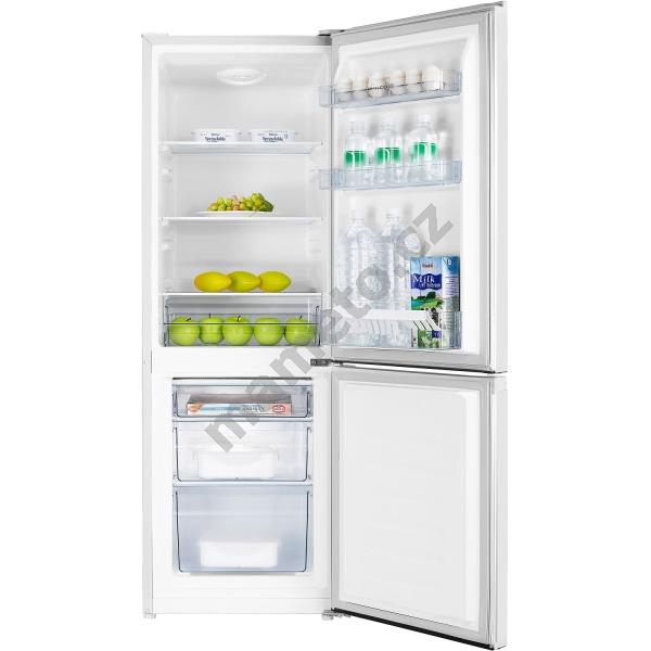 Kombinovaná chladnička PC165E o objemu chladící části 122 litrů a mrazicí části 53 litrů. Skleněné police a LED osvětlení v prostoru chladničky zajistí komfort při ukládání potravin.