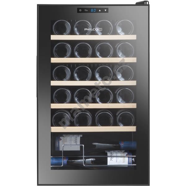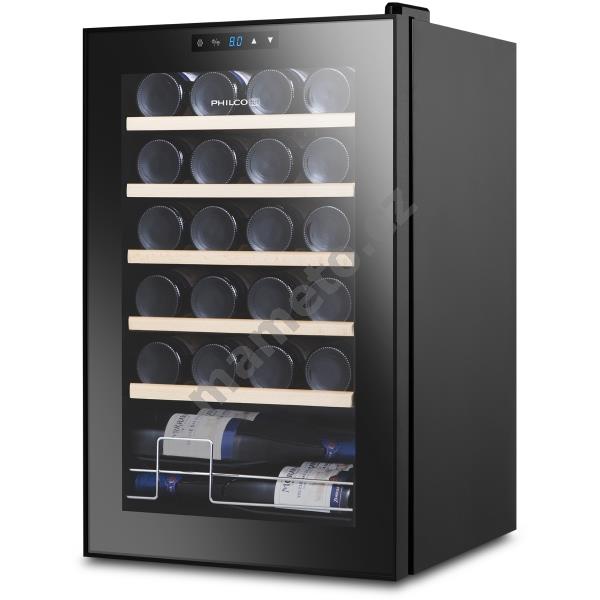 Model Philco PW24KF je jednozónová kompresorová vinotéka pro 24 lahví, která uchová Vaše vína v té nejlepší kvalitě při Vámi nastavené teplotě. Obsahuje odolné tónované sklo dveří proti poškrábání. Víno je uchováno v bezpečí díky chladícímu kompresoru. Senzory automaticky vyhodnotí současné podmínky ve vinotéce a přizpůsobí je Vašemu aktuálnímu nastavení. Vinotéka má interiér osvětlený pomocí LED světel a jednoduché senzorové ovládání. Pro zobrazení veškerého nastavení pak slouží LED displej. Dveře vinotéky jsou hermeticky uzavřené, ovládací panel je opatřen dětským zámkem.