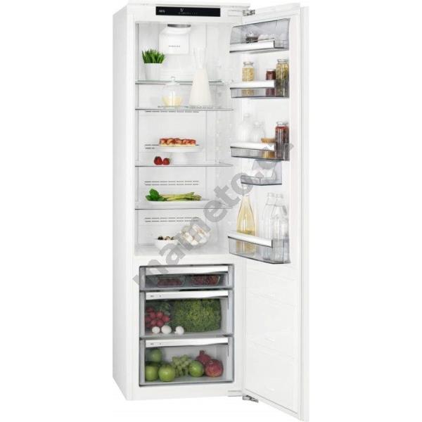 Poličky chladničky: 3 plná šířka, 1 Flexi polička, sklo s obrubou vpředu a vzadu.