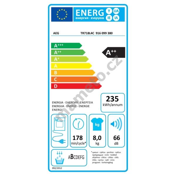 Spotřeba energie (program sušení bavlny k uložení): jen 1.59 (1.93) kWh po sušení s odstředěním s 1400 (1000) ot./min.