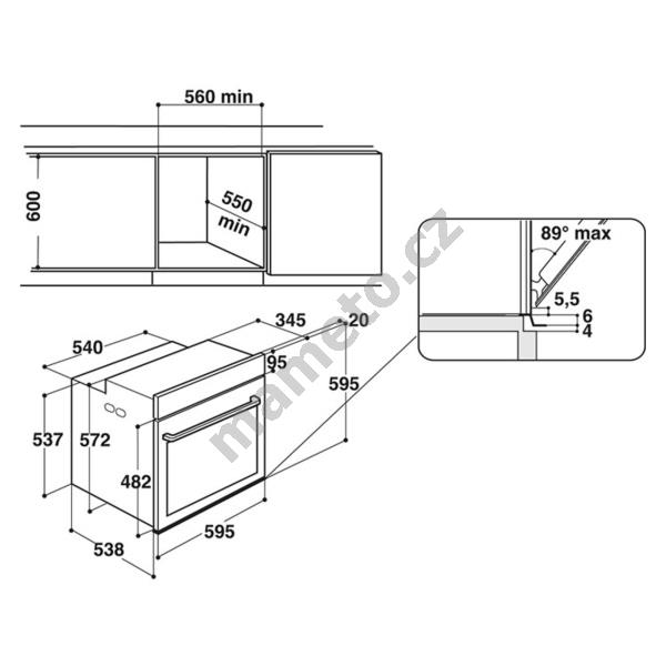 | Rozměry otvoru pro zabudování (vxšxh) | 600x560x550 mm |