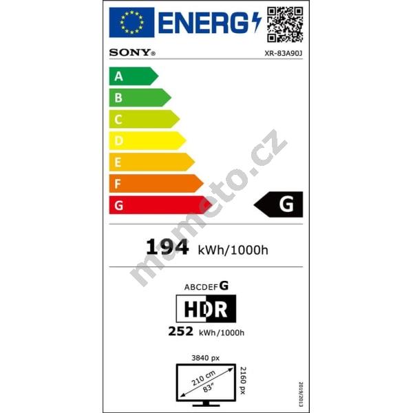 Obrazovka/displej Úhlopříčka 208 cm (83 ") Rozlišení: 4K Ultra HD (3840×2160) Typ podsvícení: OLED Další vlastnosti: frekvence panelu 100 Hz, procesor Cognitive Processor XR s technologií kognitivní inteligence, sada technologií pro realistický obraz XR Picture (XR Colour, XR Contrast, XR Clarity), vylepšení kontrastu XR OLED Contrast Pro, ostré detaily v rychlých scénách s technologií XR Motion Clarity, navýšení rozlišení snímků v 2K do 4K díky XR 4K Upscaling, lepší detaily a textury díky 4K XR Super Resolution, plynulý obraz s 4K XR Smoothing, technologie pro vysoký dynamický rozsah XR HDR Remaster, HDR10, HLG, realistické barvy XR Triluminos Pro, světelný snímač, technologie Dolby Vision, bezrámový design.